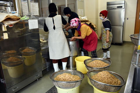 ⇐ こちらは味噌加工・・・麹発酵機で麹づくりから・・・3日を要する大事業です・・・